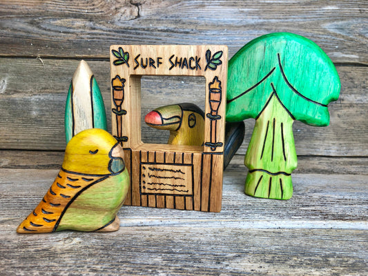Wooden Retro Surf Board Toy~ Blue, Yellow, Or Red