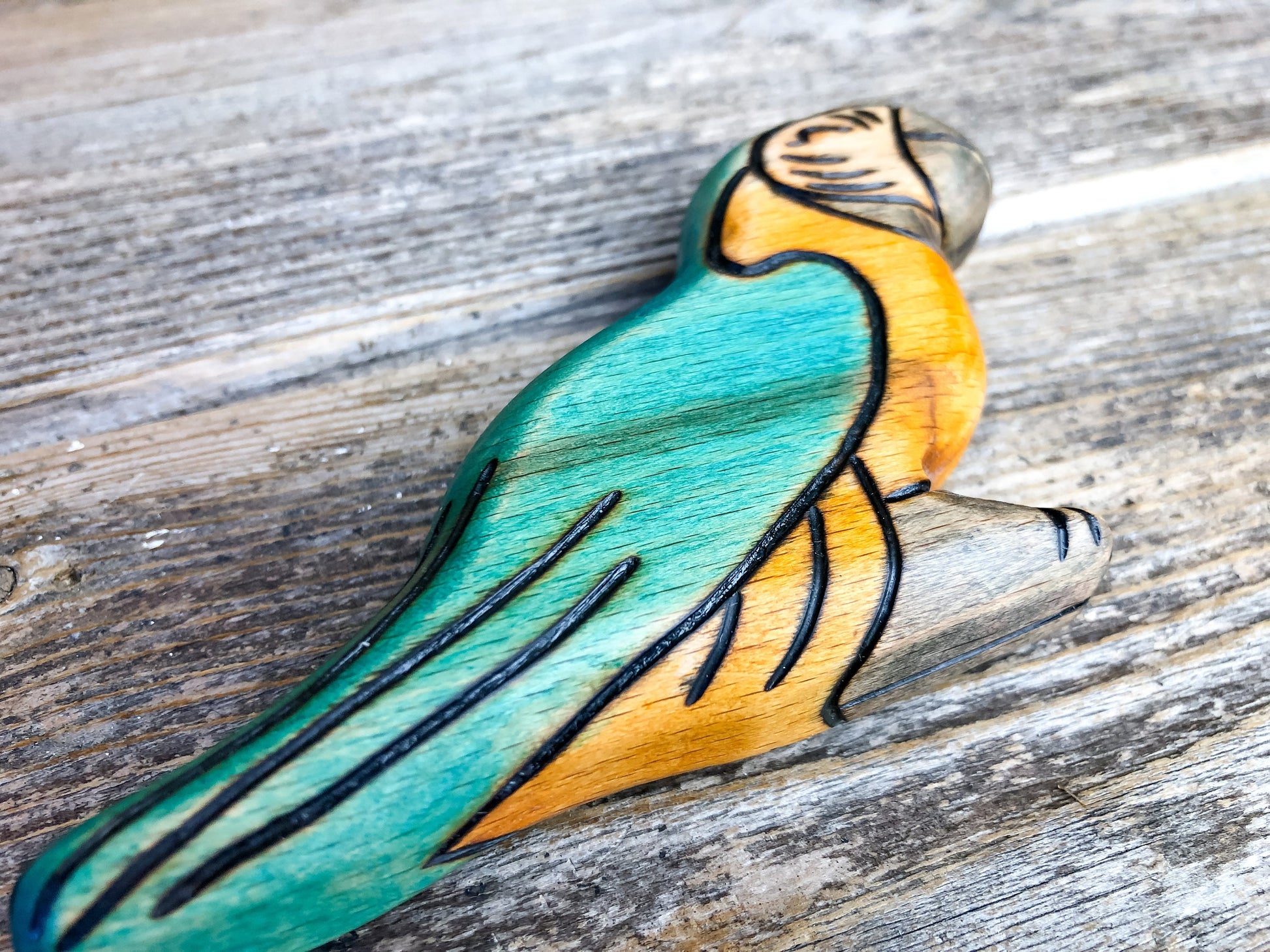 Macaw Dimensions: 3.25" Tall, 4.5" Wide, Approx. .75" Thick