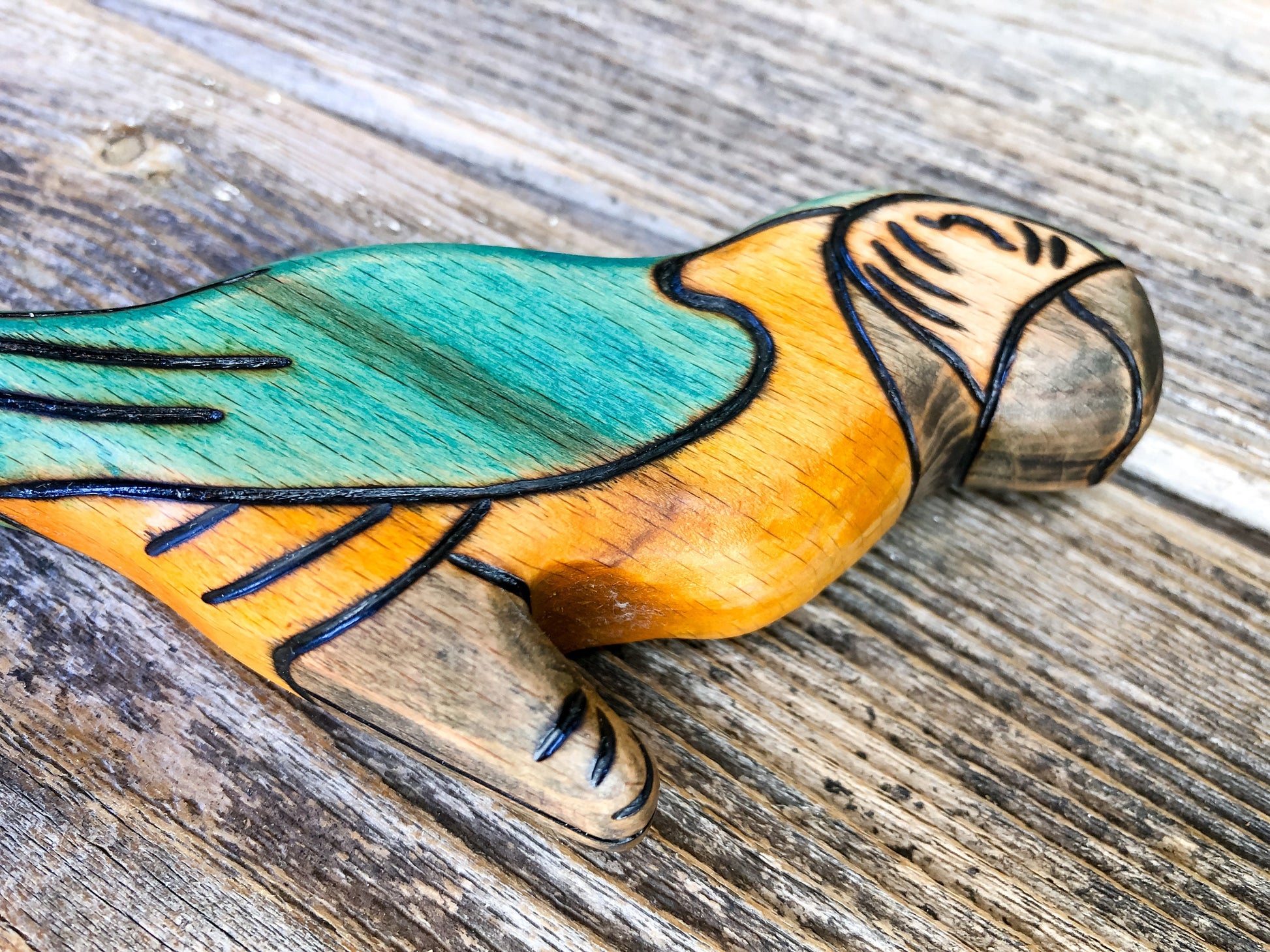 These heirloom-quality animals are handcrafted from solid hickory hardwood, the hardest wood native to North America, and are then painted with food-grade dye, nontoxic and hypoallergenic shellac sealant, and an all natural beeswax finish paste. No two handcrafted items are alike, every item is unique! Therefore, colors may vary slightly.