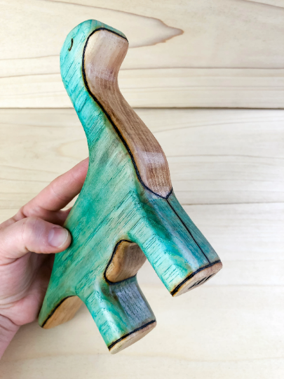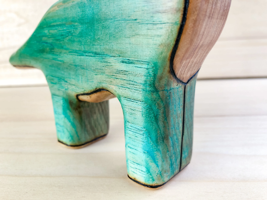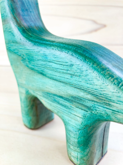 These heirloom-quality animals are handcrafted from solid hickory hardwood, the hardest wood native to North America, and are then painted with food-grade dye, nontoxic and hypoallergenic shellac sealant, and an all natural beeswax finish paste. No two handcrafted items are alike, every item is unique! Therefore, colors may vary slightly.