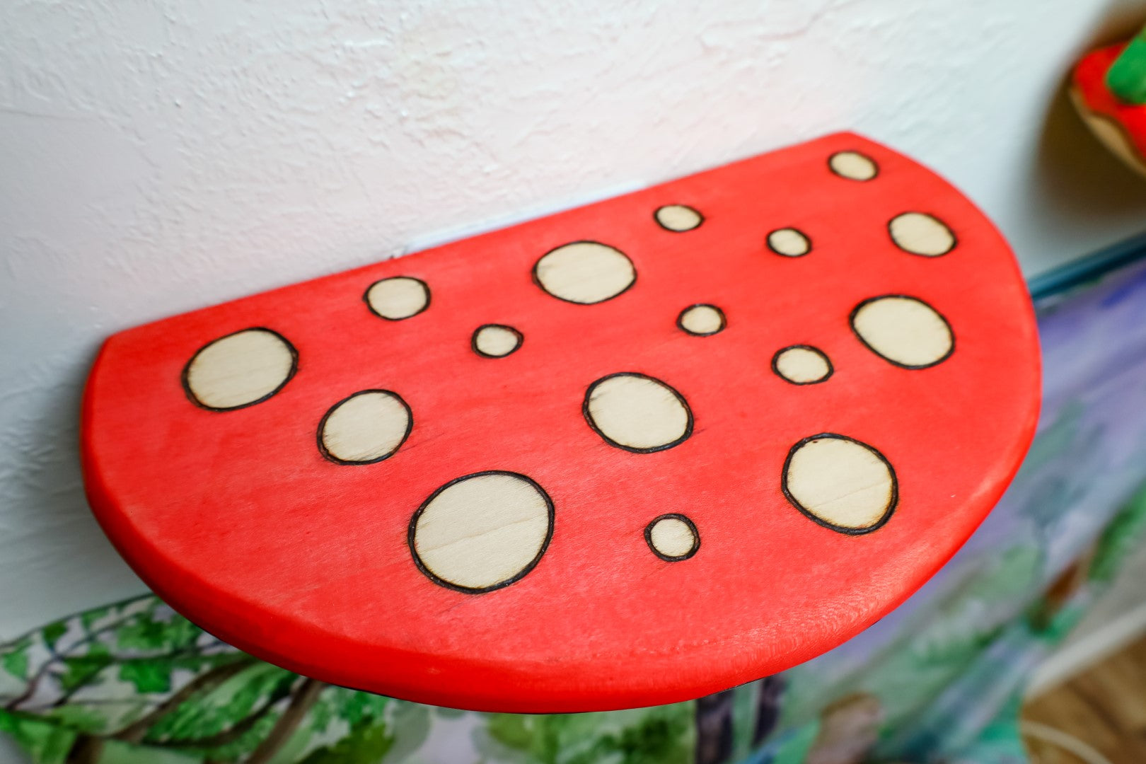 These Mushroom Top Shelves are such a fun addition to any space! Every time you walk in the room they will quickly draw your attention and add such a fun pop of color! The spots on the mushrooms add a nice 'texture' to your wall space as well.