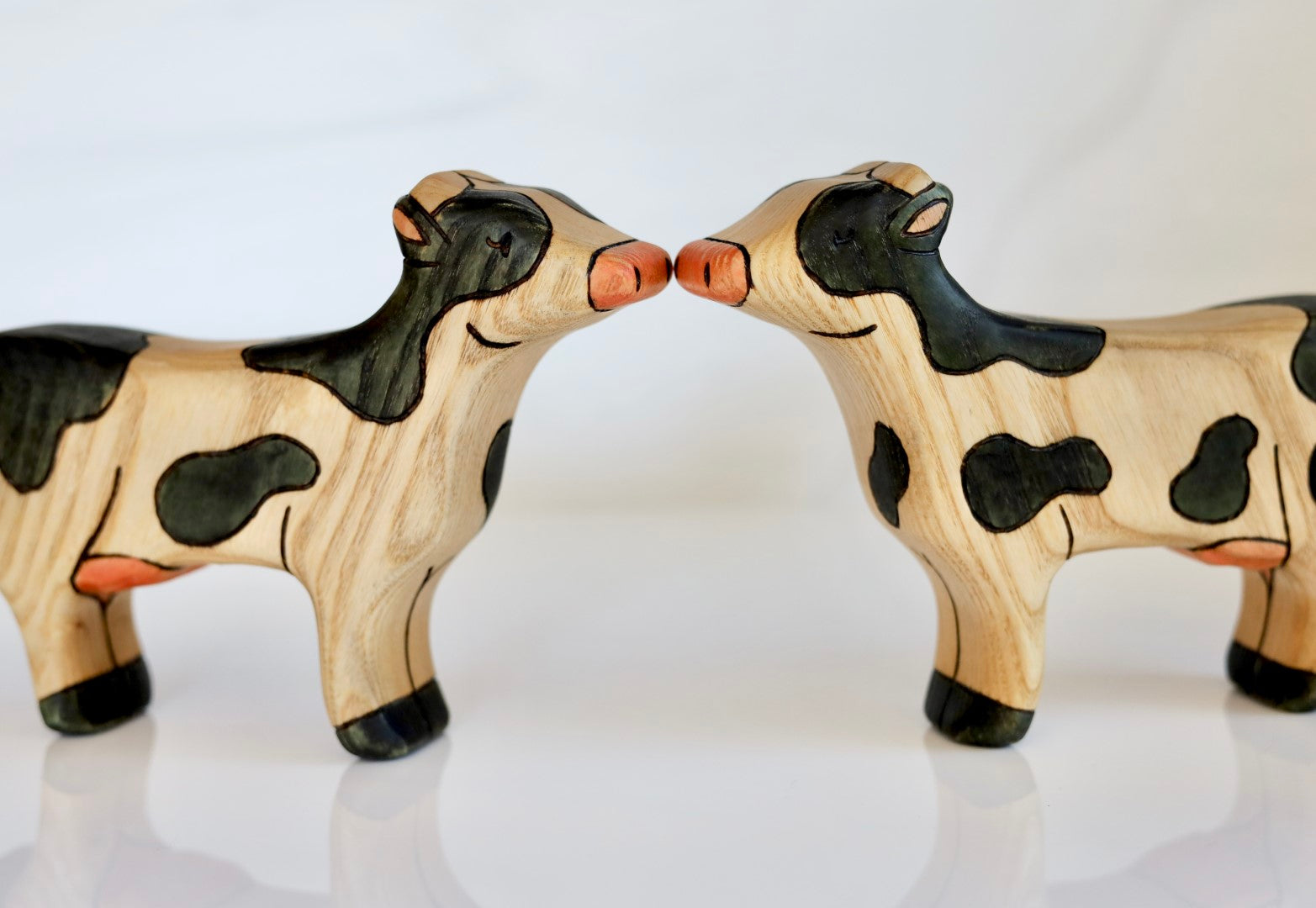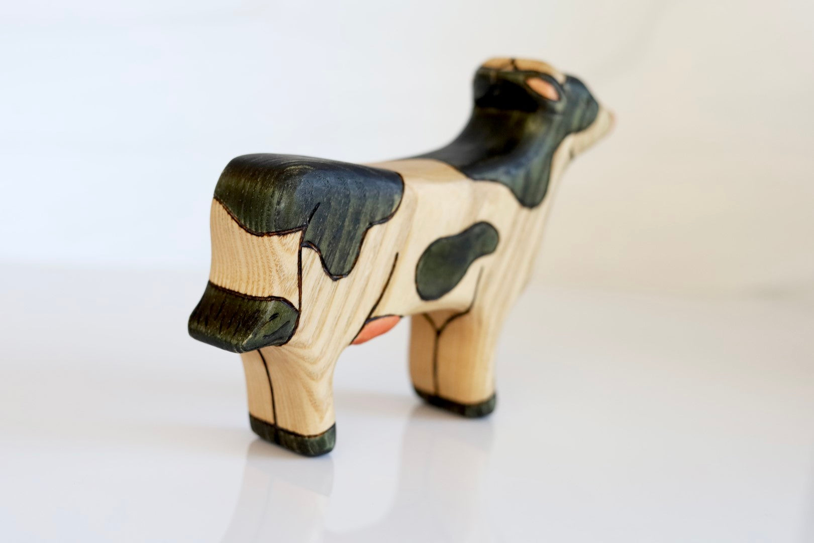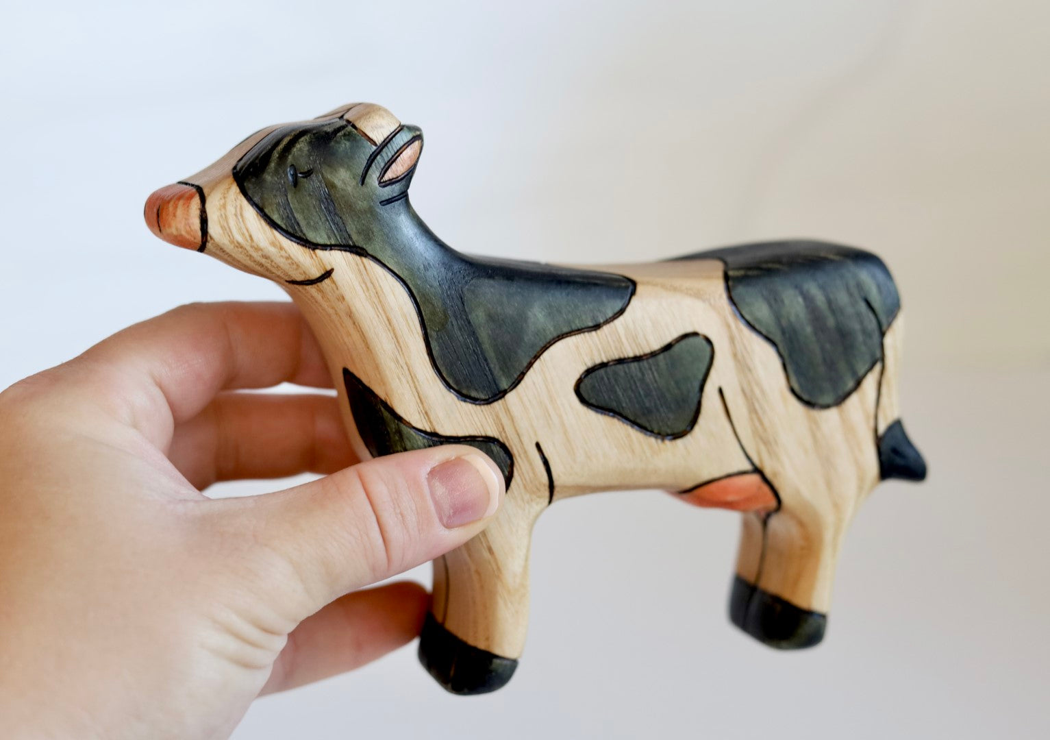 These heirloom-quality animals are handcrafted from solid hardwood, we primarily use Maple, Ash and Hickory, and are then painted with food-grade dye, nontoxic and hypoallergenic shellac sealant, and an all natural beeswax finish paste. No two handcrafted items are alike, every item is unique! Therefore, colors may vary slightly.