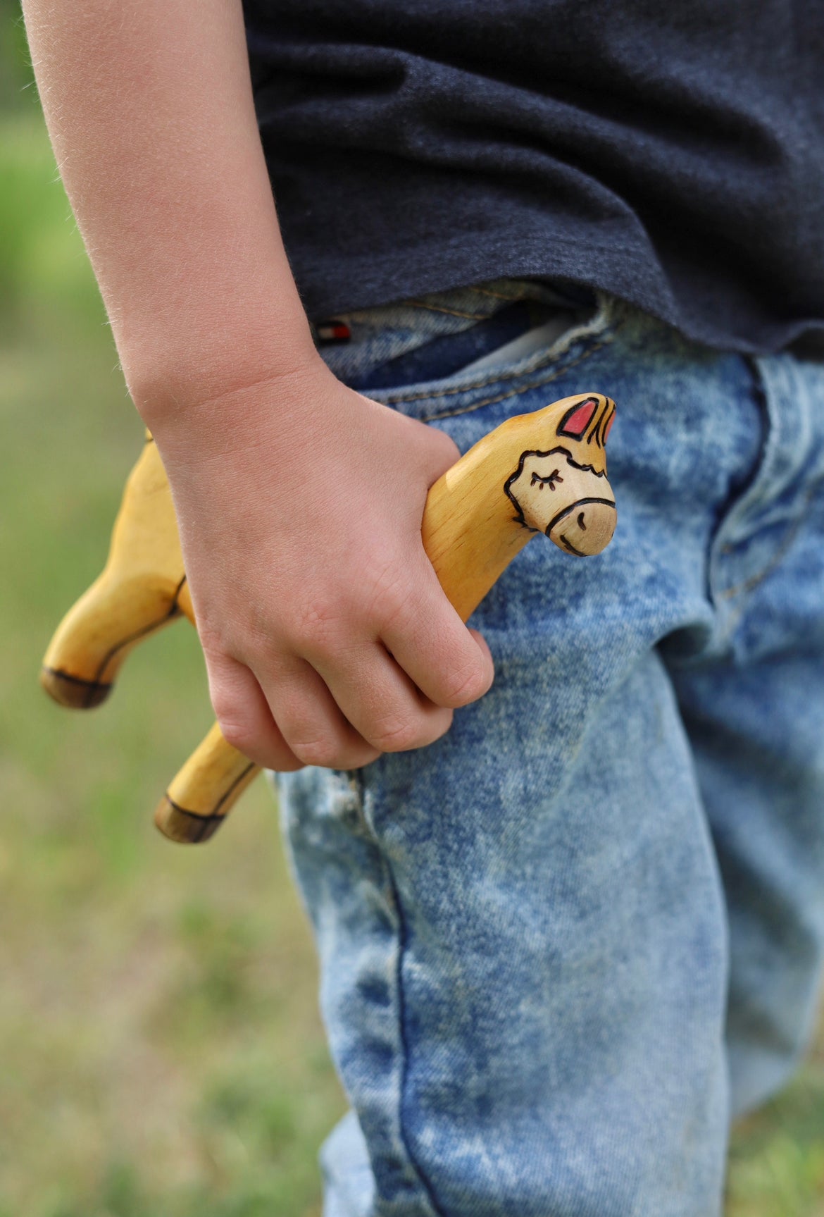 These heirloom-quality toys are handcrafted from solid hickory hardwood, the hardest wood native to North America, and are then painted with food-grade dye, sealed with nontoxic and hypoallergenic shellac sealant, and an all-natural beeswax finish paste. No two handcrafted items are alike, every item is unique! Therefore, colors may vary slightly.