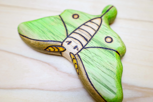 Luna Moth Dimensions: 4" Tall, 5" Wide, .75" Thick