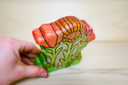 These heirloom-quality toys are handcrafted from solid hickory hardwood, the hardest wood native to North America, and are then painted with food-grade dye, sealed with nontoxic and hypoallergenic shellac sealant, and an all natural beeswax finish paste. No two handcrafted items are alike, every item is unique! Therefore, colors may vary slightly.